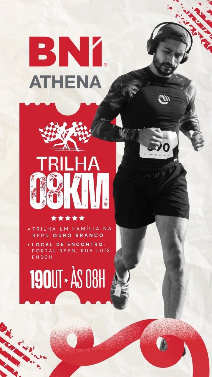 A BNI Athena convida você e sua família para participar da Trilha 08KM, um percurso cheio de natureza e companheirismo pela RPPN de Ouro Branco. 🌿