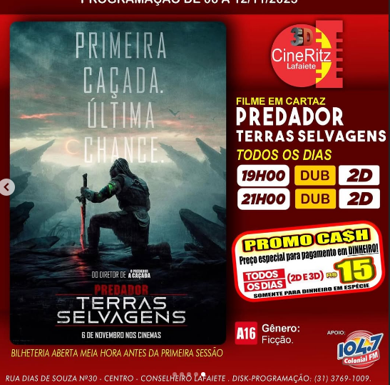 📍 Cine Ritz Lafaiete – Rua Dias de Souza, nº 30 – Centro