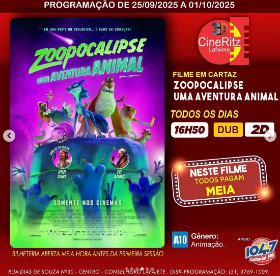 📍 Cine Ritz Lafaiete – Rua Dias de Souza, nº 30 – Centro – Conselheiro Lafaiete/MG